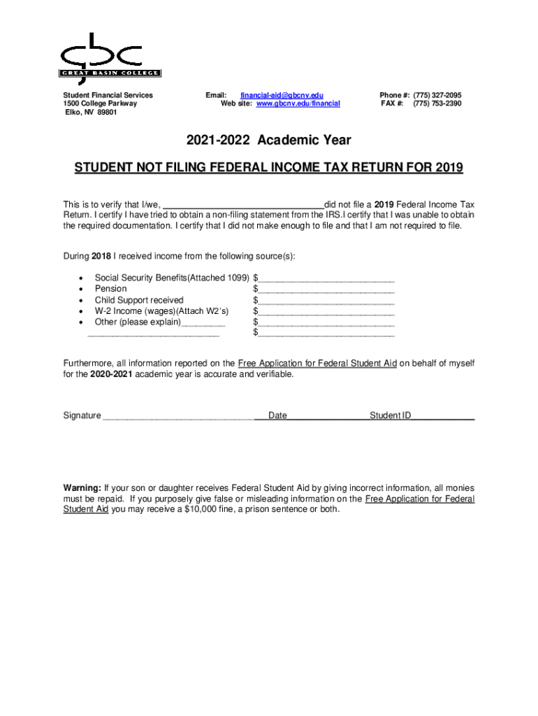 Student Financial Services 1500 College Parkway Elk, NV 89801Email: financialaid@gbcnv.edu Website: www.gbcnv.edu/financialPhone #: (775) 3272095 FAX #: (775) 753239020212022 Academic Year STUDENT