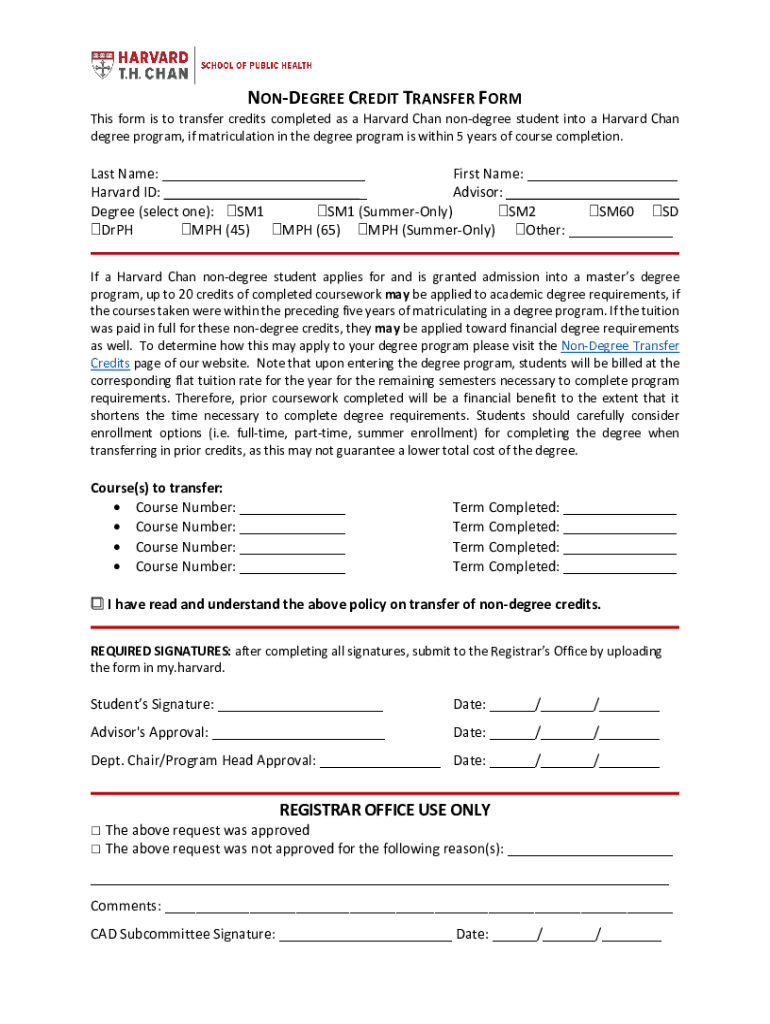 Get the free NON-DEGREE CREDIT TRANSFER FORM Harvard T.H. Chan School ...