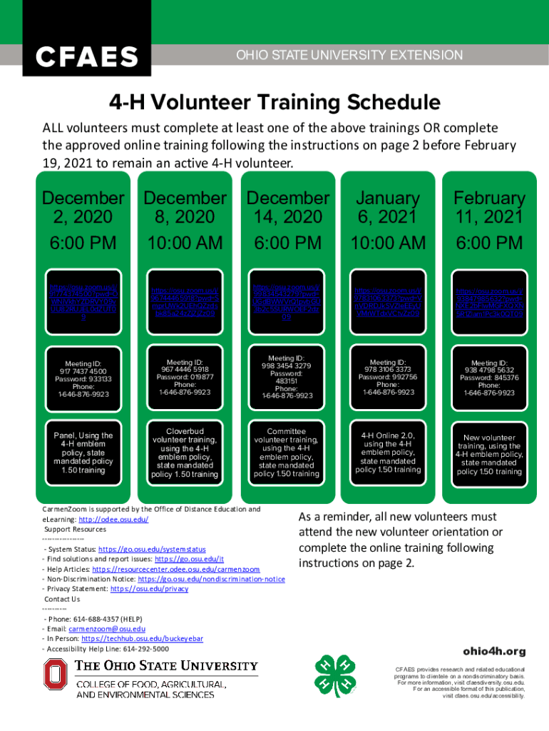 OHIO STATE UNIVERSITY EXTENSION4H Volunteer Training Schedule ALL volunteers must complete at least one of the above trainings OR complete the approved online training following the instructions on