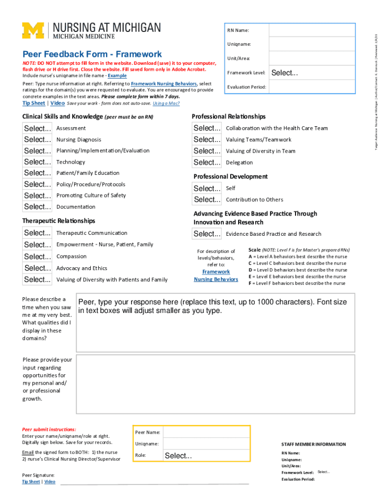Unique:Peer Feedback Form FrameworkNOTE: DO NOT attempt to fill form on the website. Download (save) it to your computer, flash drive or H drive first. Close the website. Fill saved form only in Adobe