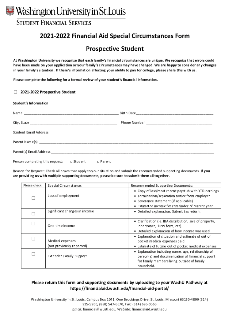 20212022 Financial Aid Special Circumstances Form Prospective Student At Washington University we recognize that each family financial circumstances are unique. We recognize that errors could have