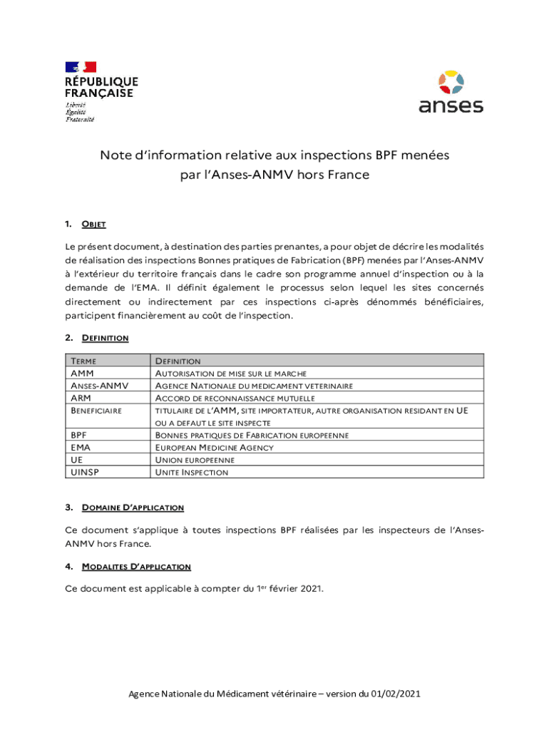 Obtenir le gratuit Note d'information sur la prise en charge des inspections ralises par l'ANMV e...