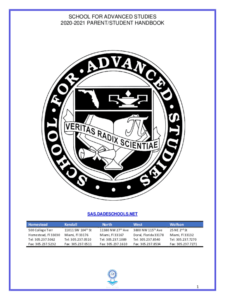SCHOOL FOR ADVANCED STUDIES 20202021 PARENT/STUDENT HANDBOOK SAS.PRESCHOOLS.NET HomesteadKendall500 College Terr Homestead, Fl 33030 Tel: 305.237.5062 Fax: 305.237.523211011 SW 104th St Miami, Fl