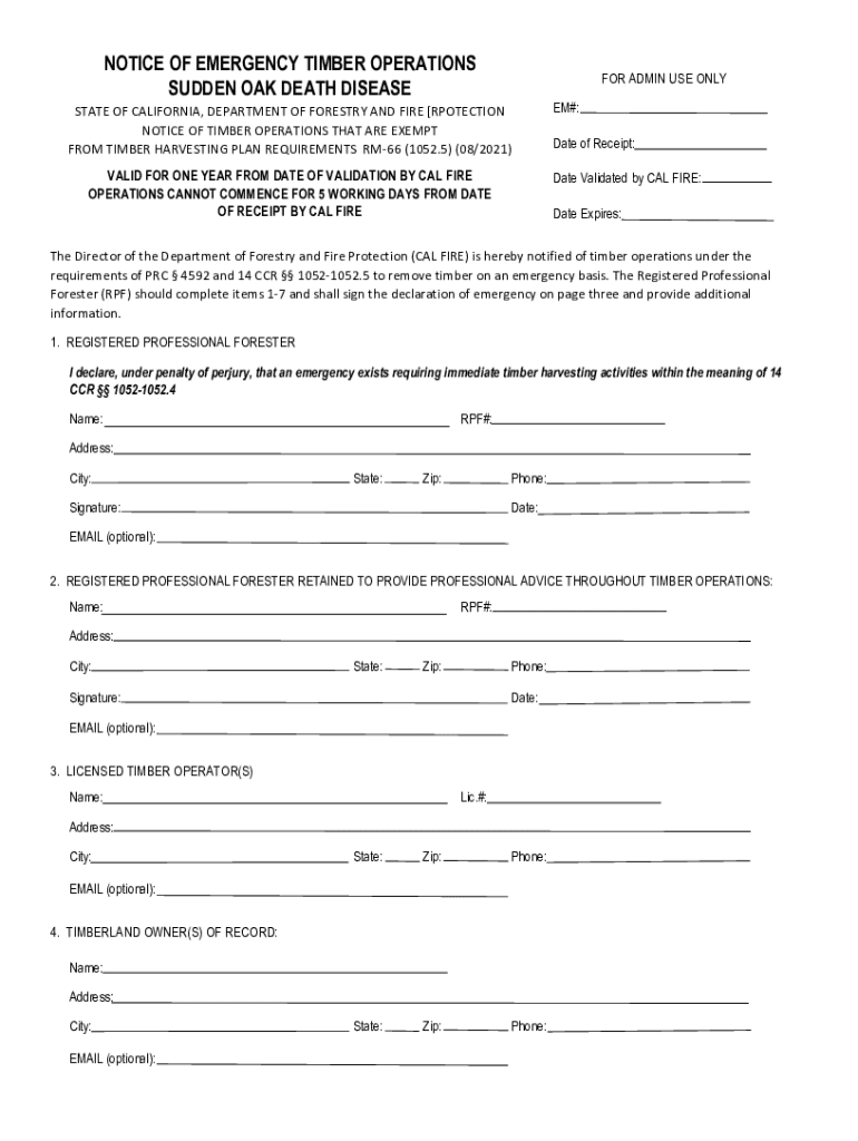 Notice of emergency timber can usually be filled out online through a government agency's website or by submitting a paper form.