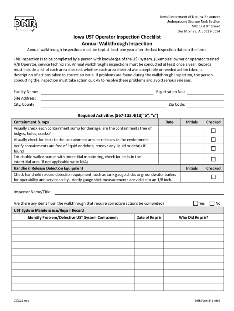 Get the free www.iowadnr.govPortalsidnrIowa UST Operator Inspection Checklist - 30 day Walkthroug...