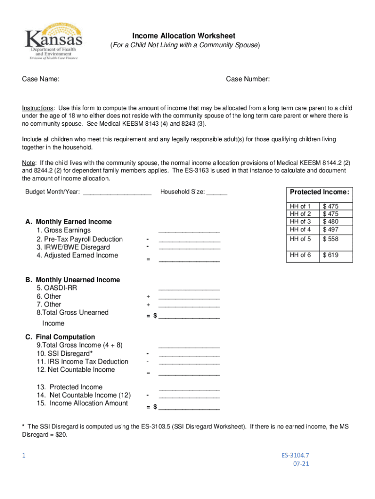 Income Allocation Worksheet (For a Child Not Living with a Community Spouse)Case Name:Case Number:Instructions: Use this form to compute the amount of income that may be allocated from a long term