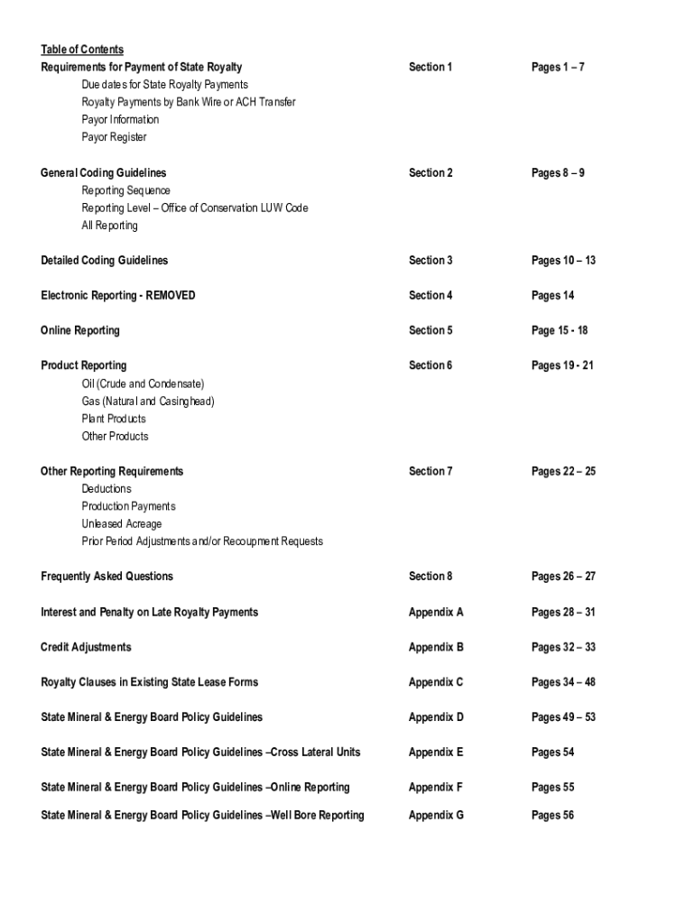 Table of Contents Requirements for Payment of State Royalty Due dates for State Royalty Payments by Bank Wire or ACH Transfer Mayor Information Mayor RegisterSection 1Pages 1 7General Coding Guidelines
