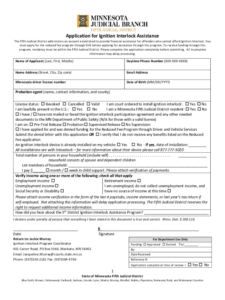 Get the free Application For Ignition Interlock Assistance - Courts Mn ...