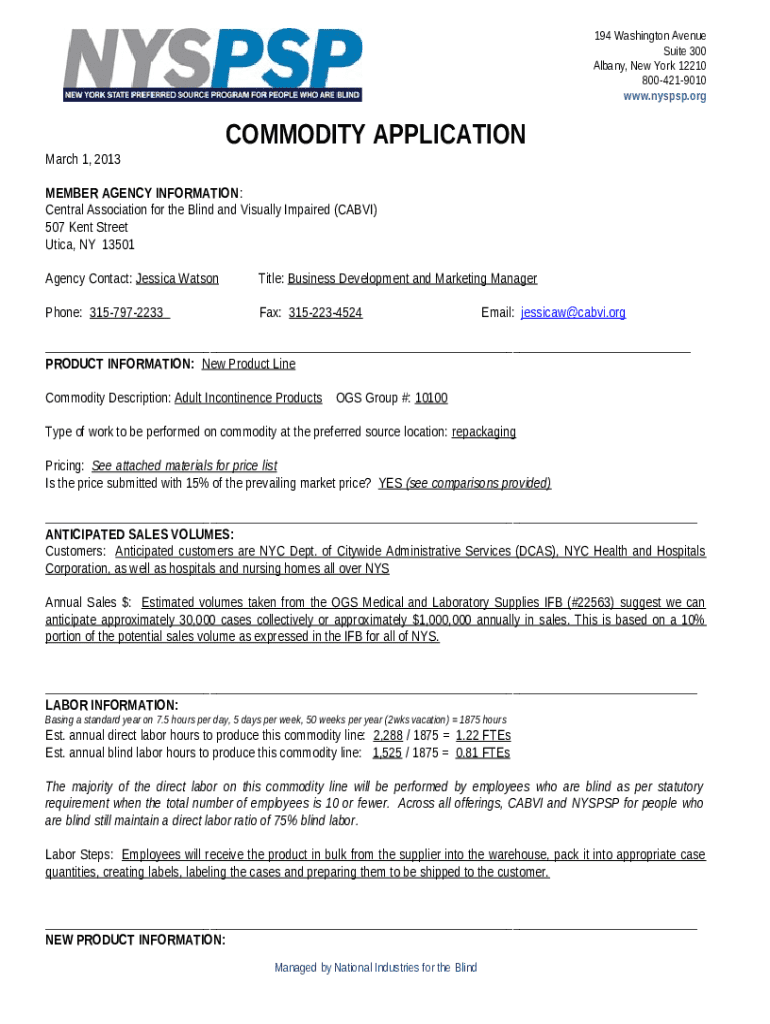 What is NYS Procurement Council, October 30, 2013 NIB Commodity Application . NYS Procurement Council, October 30, 2013 NIB Commodity Application - ogs ny Form?
