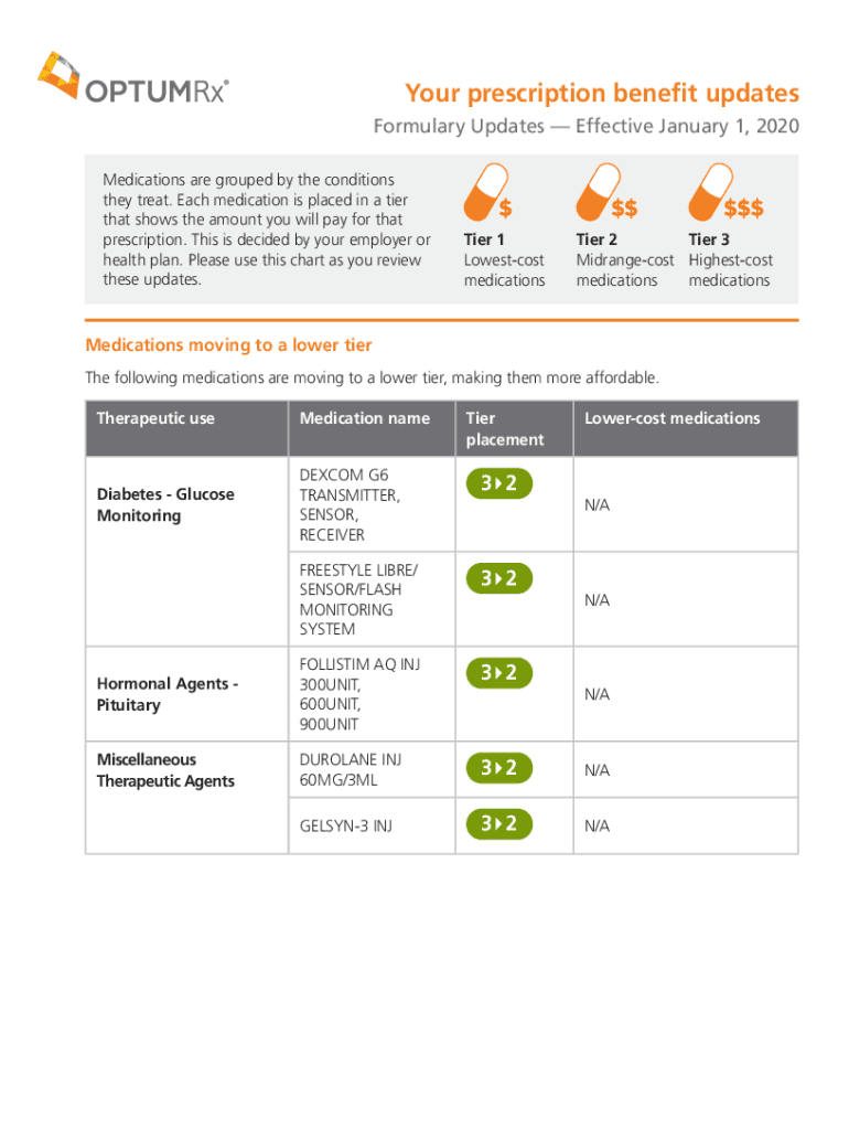 Your prescription benefit updates Formulary Updates Effective January 1, 2020, Medications are grouped by the conditions they treat. Each medication is placed in a tier that shows the amount you will