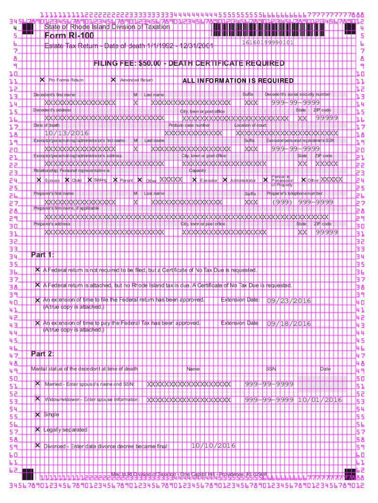 Get the free State of Rhode Island Division of Taxation Form RI-100A - tax ri