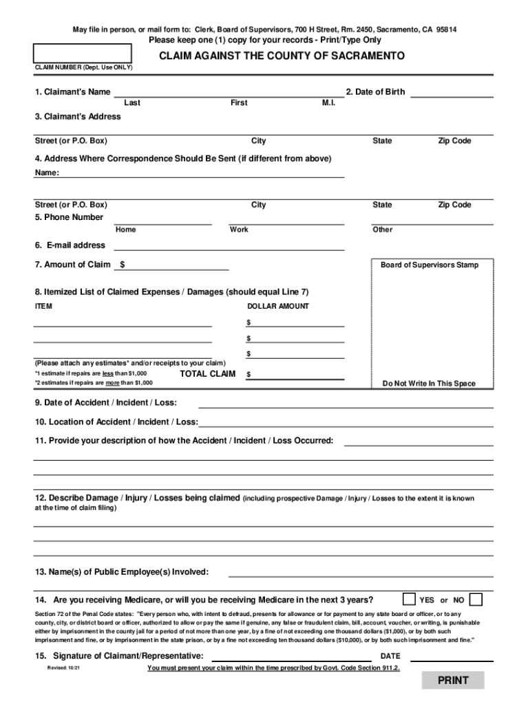 County Executive Ann EdwardsBoard of Supervisors Phil Serena, District 1 Patrick Kennedy, District 2 Rich Desmond, District 3 Sue Frost, District 4 Don Notable, District 5Filing a Claim Against County
