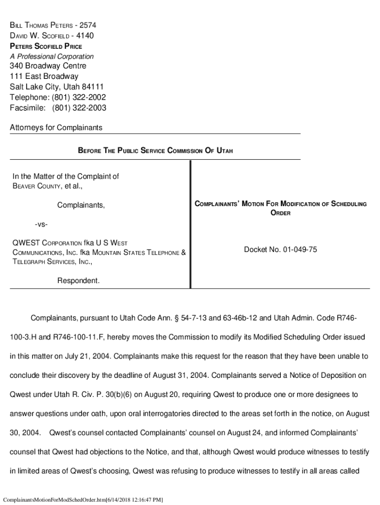 BILL THOMAS Peters 2574 David W. Schofield 4140 PETERS SCHOFIELD PRICE A Professional Corporation340 Broadway Center 111 East Broadway Salt Lake City, Utah 84111 Telephone:(801) 3222002 Facsimile:(801)