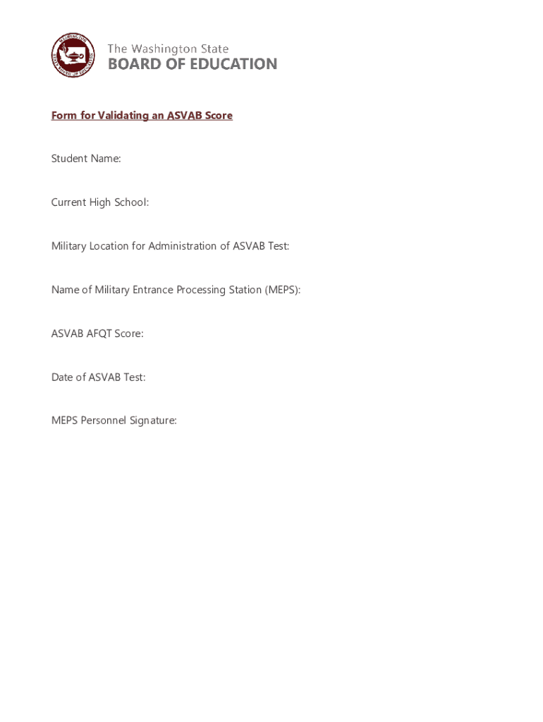 Get the free Form for ASVAB validation - Wa - sbe wa