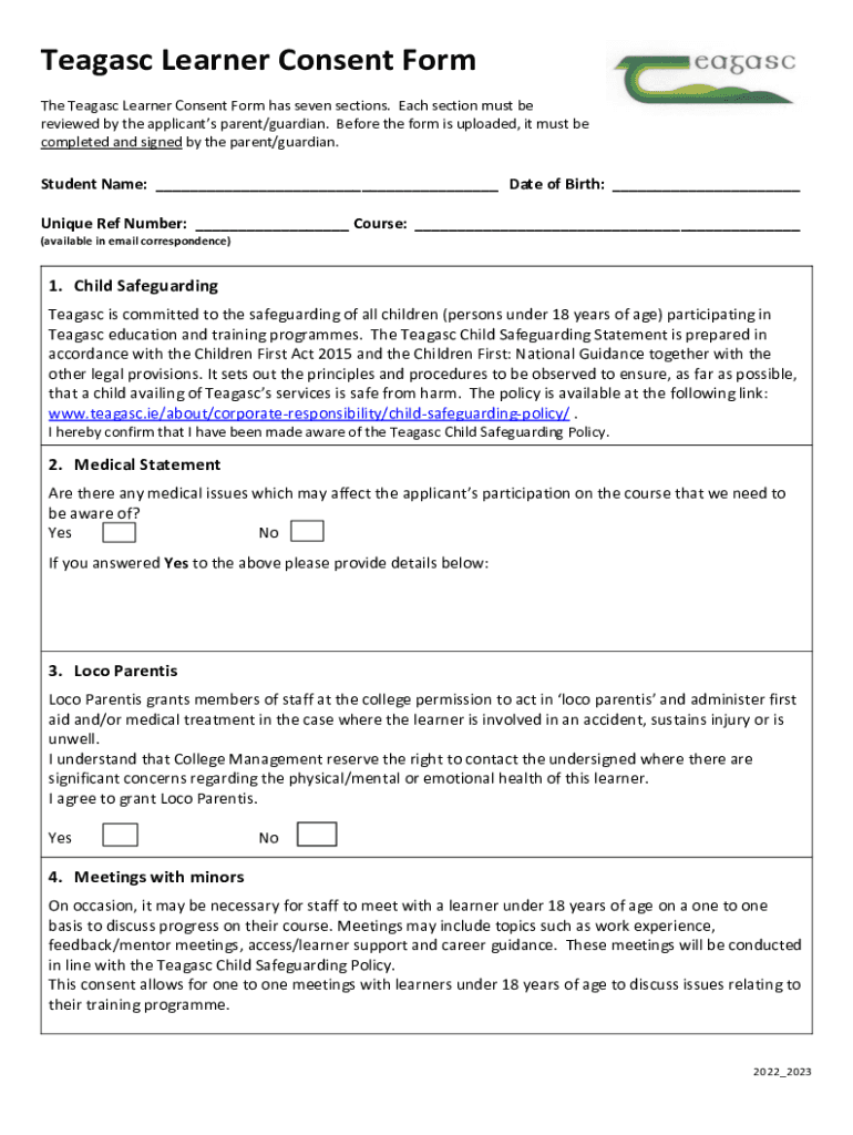 Teagasc Learner Consent Form is not the form you're looking for?Search for another form here.