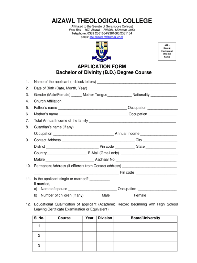 Get the free atc.edu.inApp22-23DCPC Application form forAIZAWL THEOLOGICAL COLLEGE - atc.edu.in