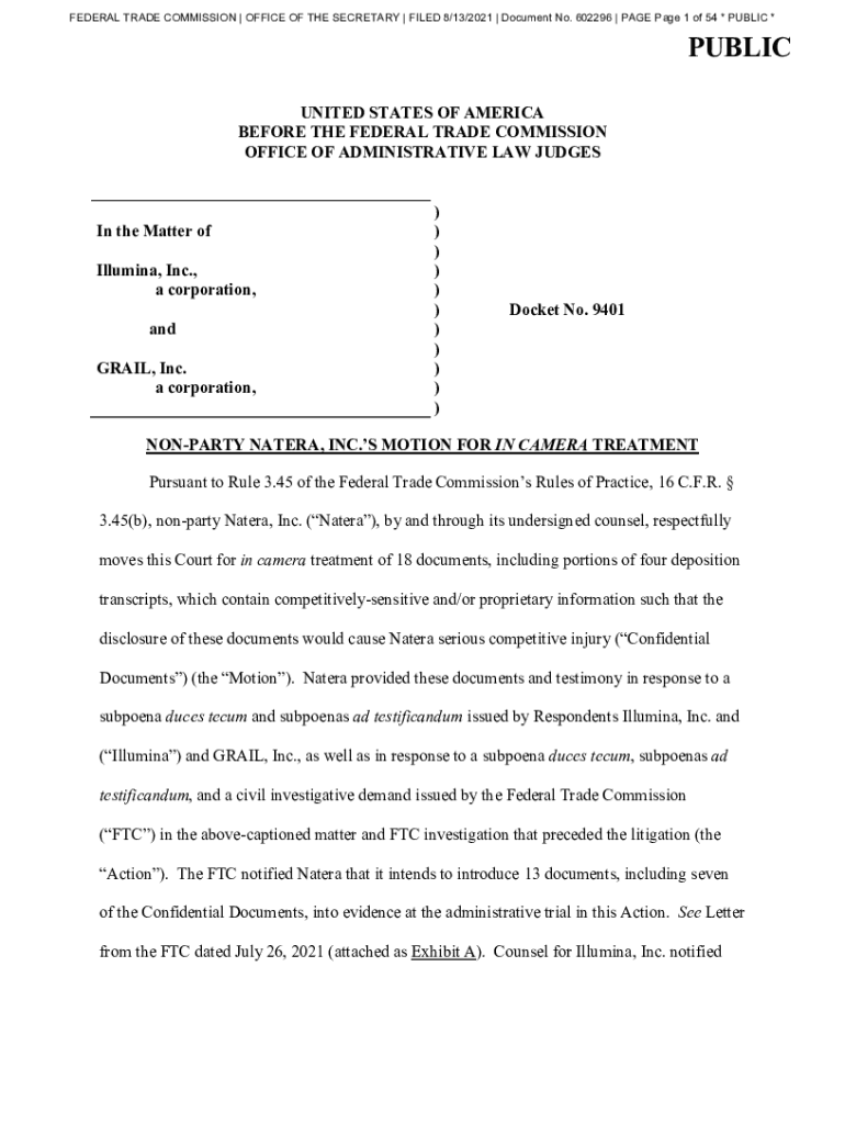 Get the free Non-Party Natera, Inc.'s Motion for In Camera Treatment