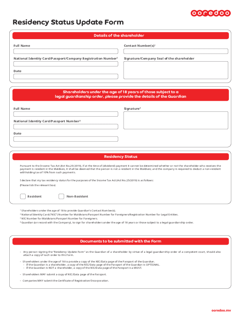 Residency Status Update Form Details of the shareholder Full Recontact Number(s)1National Identity Card/Passport/Company Registration Number2Signature/Company Seal of the shareholderDateShareholders