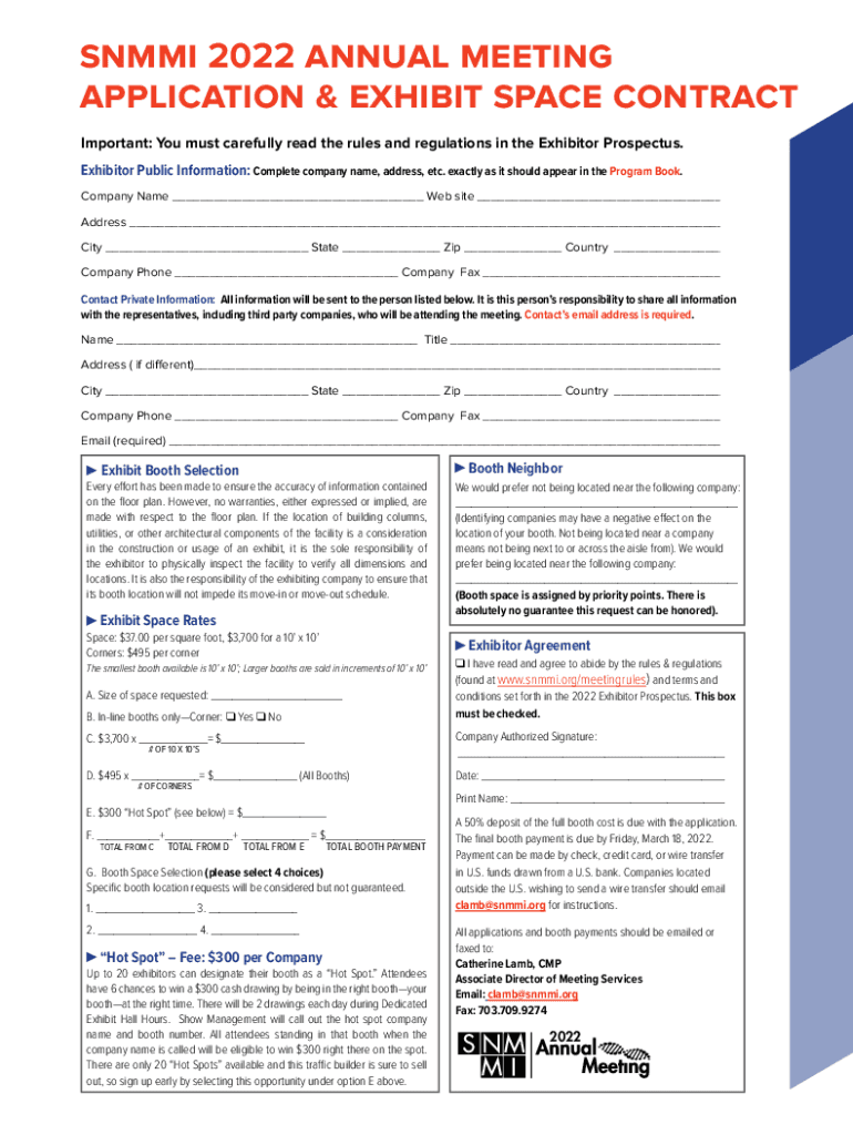 SMMI 2022 Annual Meeting Application & Exhibit Space Contract Important: You must carefully read the rules and regulations in the Exhibitor Prospectus. Exhibitor Public Information: Complete company