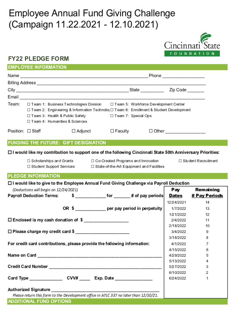 Get the free Employee Annual Fund Giving Challenge (Campaign 11.22.2021 ... - dev cincinnatistate