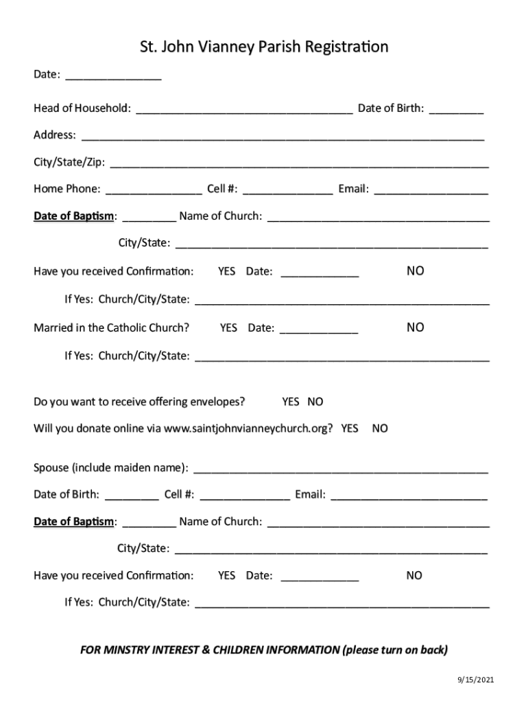 Get the free Online Parish RegistrationSt. John Vianney Parish