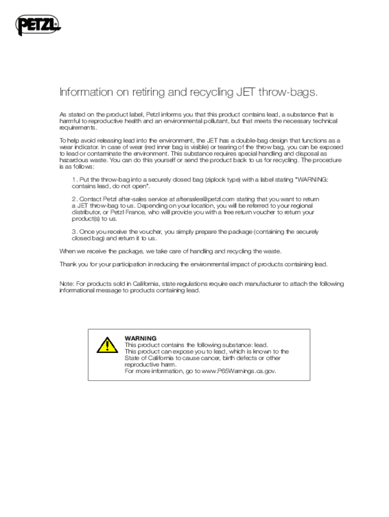 Get the free Information on retiring and recycling JET throw-bags. - Petzl