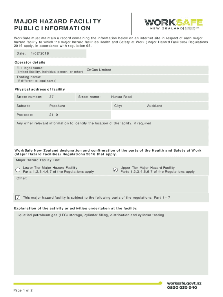 MAJOR HAZARD FACILITY PUBLIC INFORMATION Workspace must maintain a record containing the information below on an internet site in respect of each major hazard facility to which the major hazard facilities