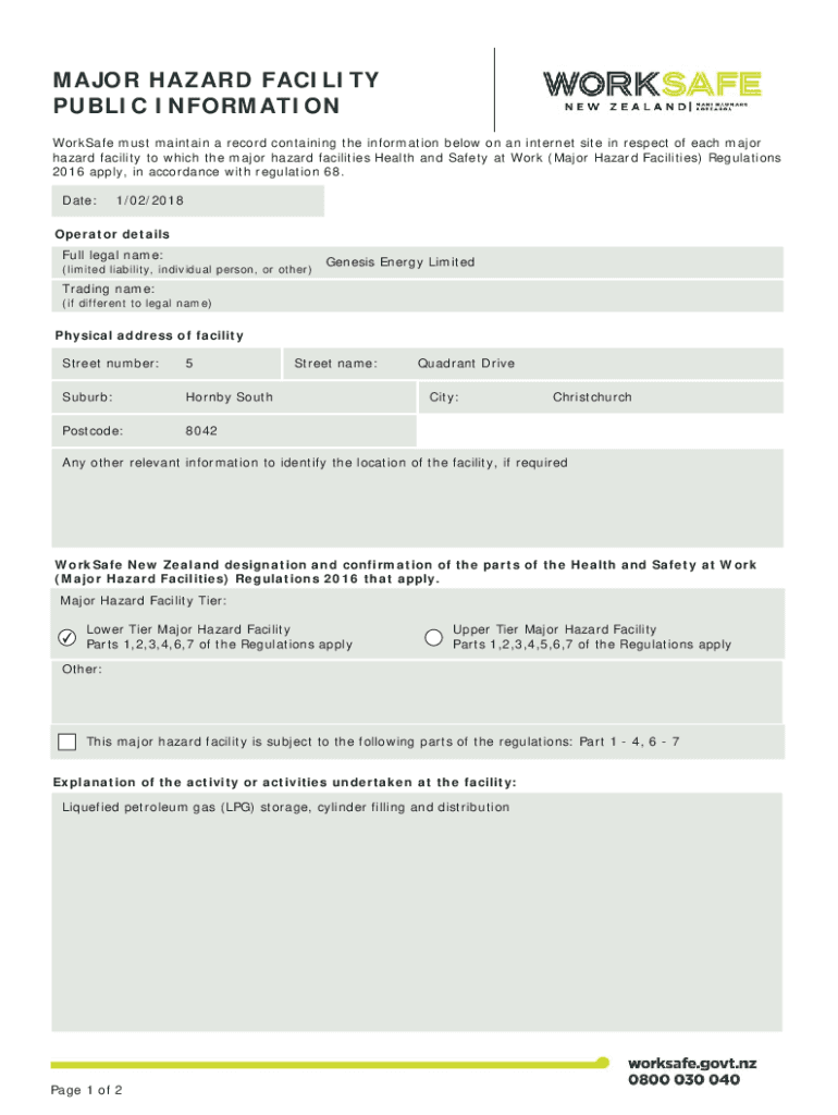 MAJOR HAZARD FACILITY PUBLIC INFORMATION Workspace must maintain a record containing the information below on an internet site in respect of each major hazard facility to which the major hazard facilities
