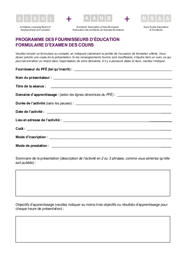 Obtenir le gratuit ARCHITECTS LICENSING BOARD OF NEWFOUNDLAND AND LABRADOR