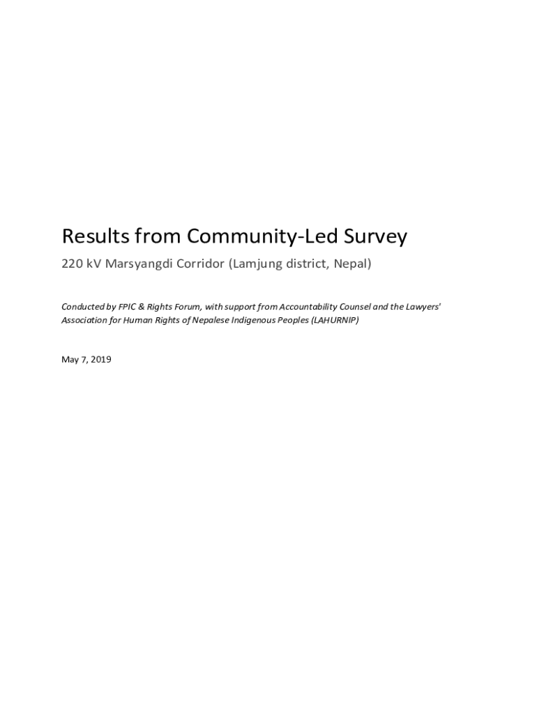 Results from Community Survey 220 KV Marsyangdi Corridor (Samsung district, Nepal) Conducted by EPIC & Rights Forum, with support from Accountability Counsel and the Lawyers Association for Human