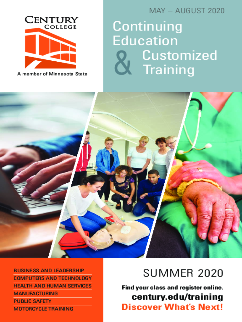 MAY AUGUST 2020A member of Minnesota StateContinuing Education Customized Training&COMPUTERS AND TECHNOLOGYSUMMER 2020HEALTH AND HUMAN SERVICESFind your class and register online. BUSINESS AND LEADERSHIPMANUFACTURING