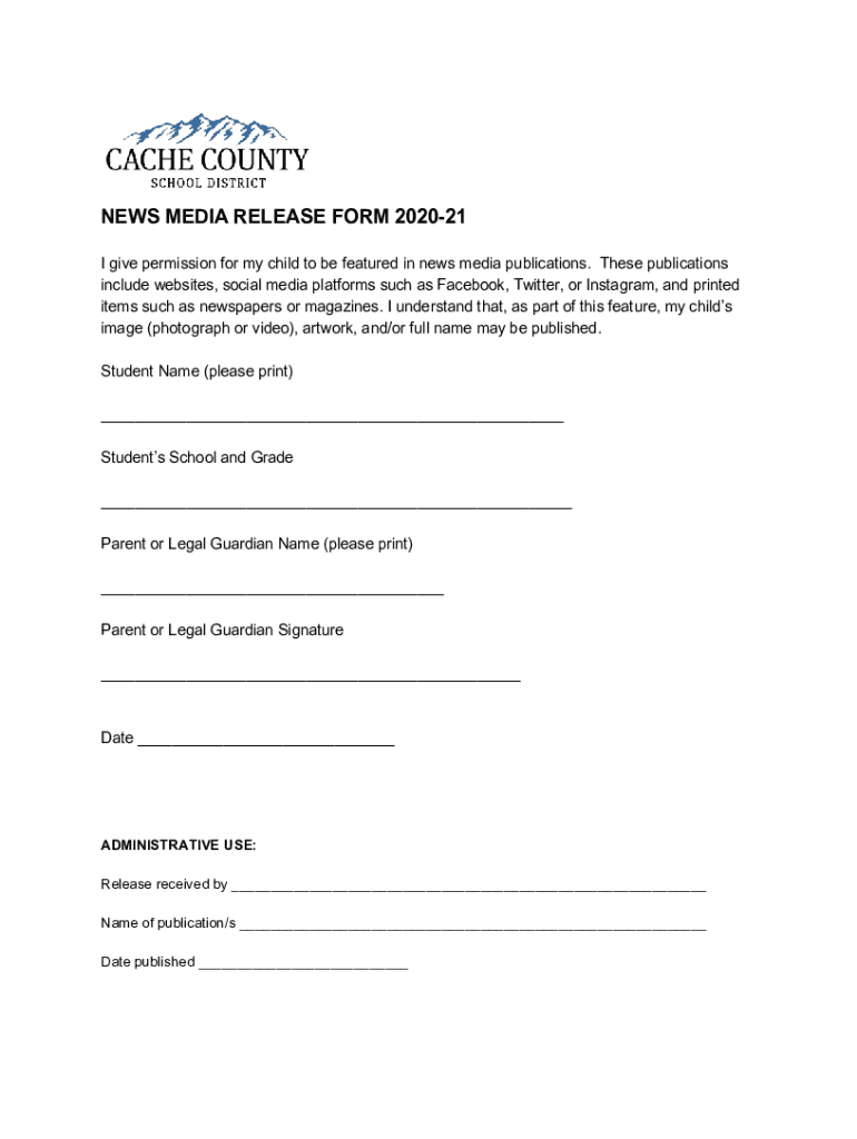 Get the free NEWS MEDIA RELEASE FORM 2020-21