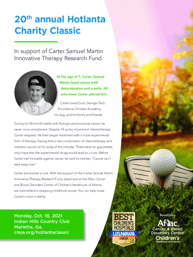 20th annual Atlanta Charity Classic In support of Carter Samuel Martin Innovative Therapy Research Fund At the age of 7, Carter Samuel Martin faced cancer with determination and a smile. All who knew