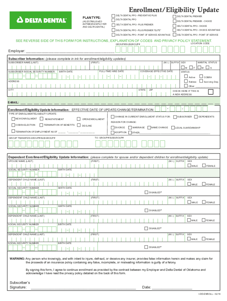 Get the free Eligibility Enrollment/Update Form - Delta Dental - sites deltadentalok