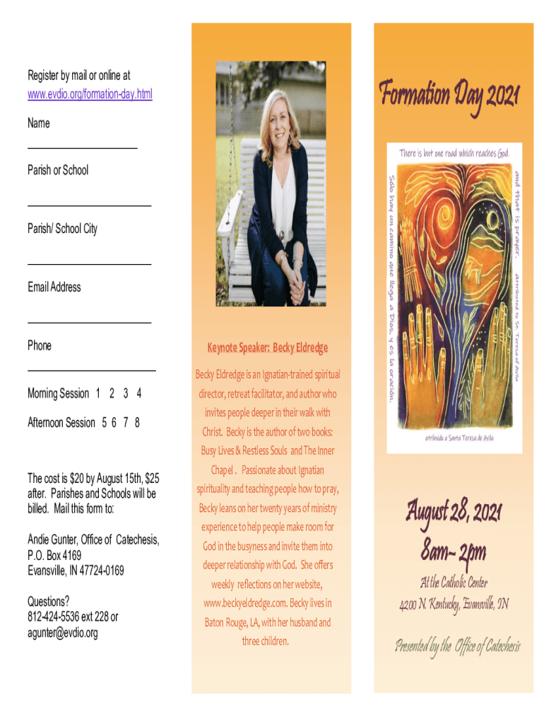 Register by mail or online at www.evdio.org/formationday.htmlFormation Day 2021Name Parish or School Parish/ School City Email AddressAUGUST 26, 2017 Phone Morning Session 1234Afternoon Session 5