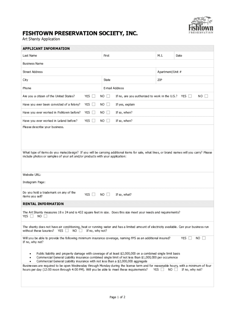 FISHBOWL PRESERVATION SOCIETY, INC. Art Shanty Application APPLICANT INFORMATION Last NameFirstM. I. DateBusiness Name Street AddressApartment/Unit #CityStateZIPPhoneEmail Addressable you a citizen
