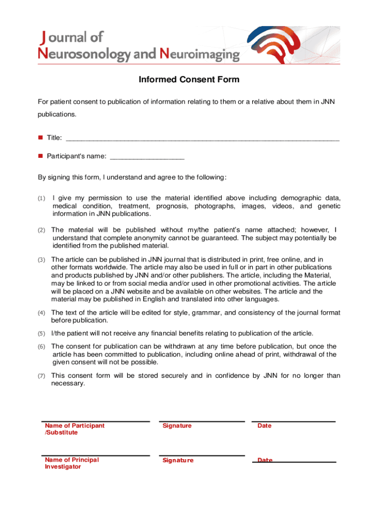 Informed Consent Form For patient consent to publication of information relating to them or a relative about them in CNN publications. Title: Participant's name: By signing this form, I understand