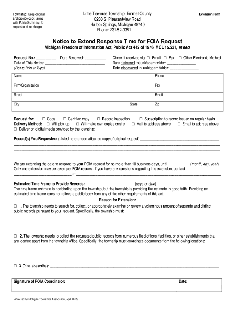 Little Traverse Township, Emmett County 8288 S. Pleasant view Road Harbor Springs, Michigan 49740 Phone: 231520351Township: Keep original and provide copy, along with Public Summary, to requestor