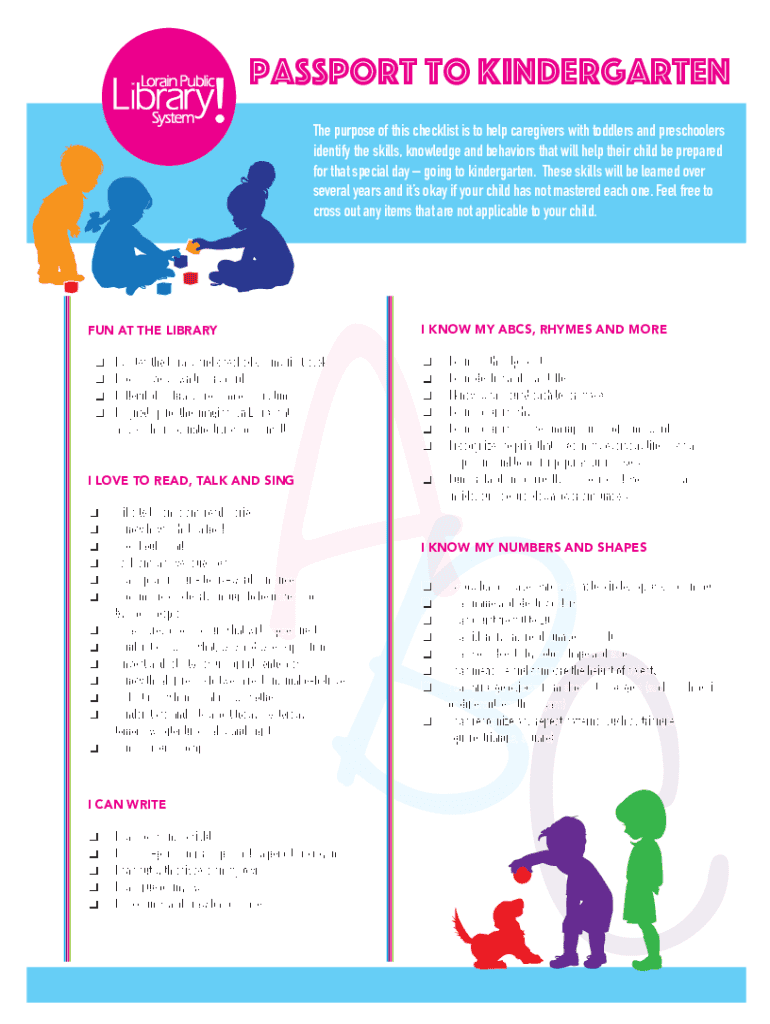 Passport To Kindergarten The purpose of this checklist is to help caregivers with toddlers and preschoolers identify the skills, knowledge and behaviors that will help their child be prepared for