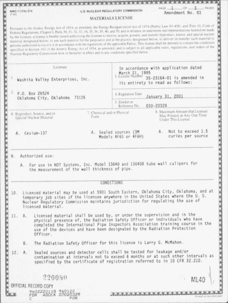 Get the free Matls licensing package for amend 3 to license 35-23164-01 for Washita Valley Enterp...