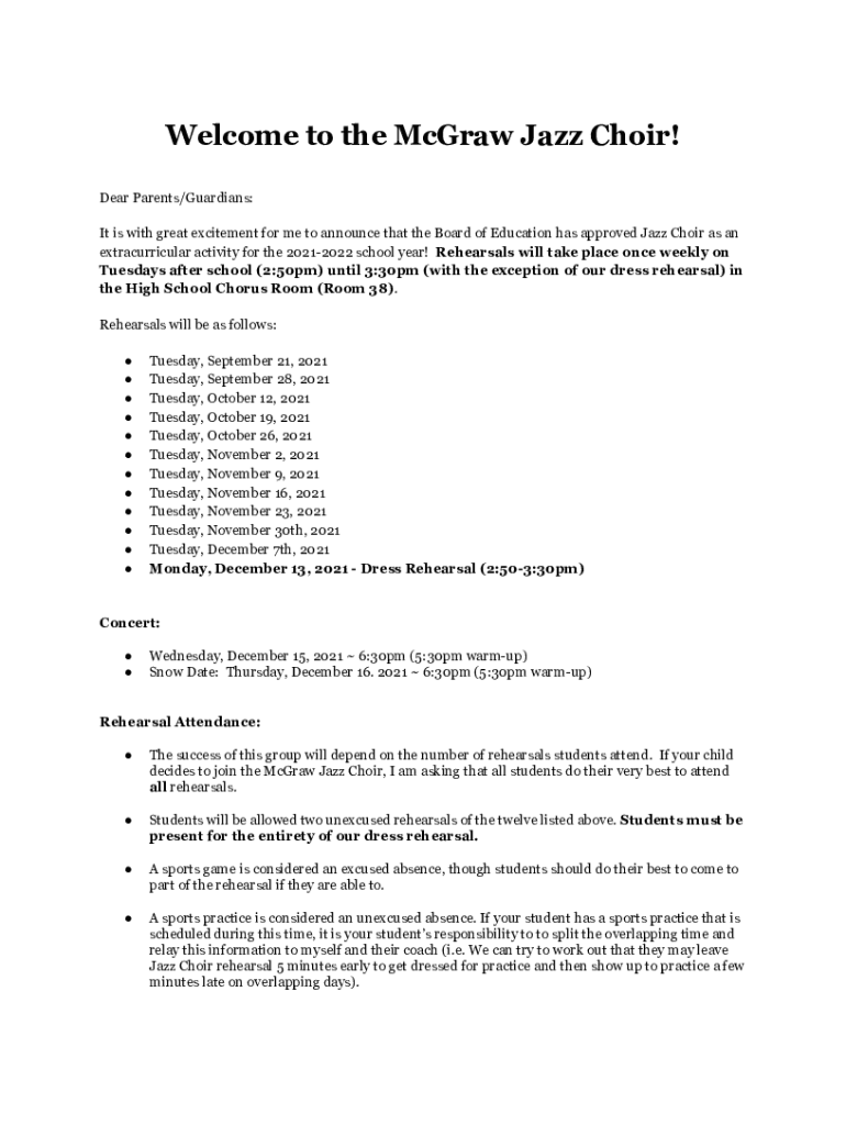 Welcome to the McGraw Jazz Choir! Dear Parents/Guardians: It is with great excitement for me to announce that the Board of Education has approved Jazz Choir as an extracurricular activity for the