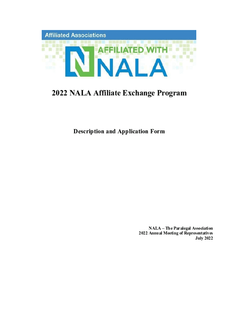 2022 NASA Affiliate Exchange ProgramDescription and Application Formal The Paralegal Association 2022 Annual Meeting of Representatives July 20222022 NASA Affiliate ExchangeProgram Call for Presentations