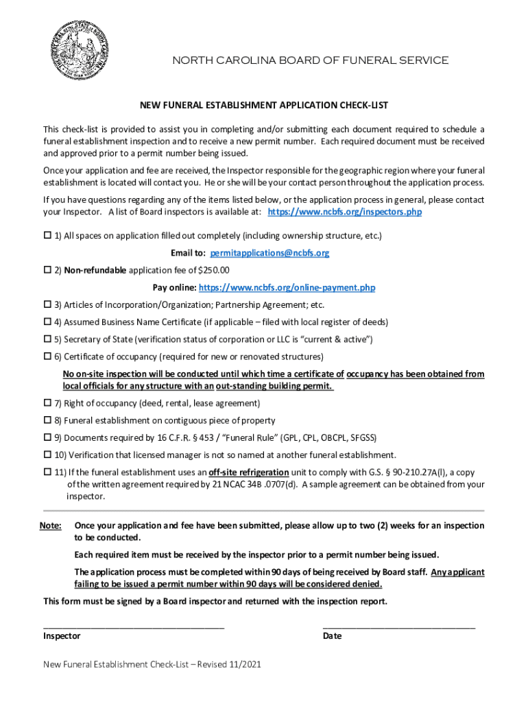 Get the free NEW FUNERAL ESTABLISHMENT APPLICATION CHECK-LIST
