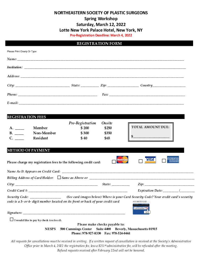 Get the free NORTHEASTERN SOCIETY OF PLASTIC SURGEONS Spring Workshop ...