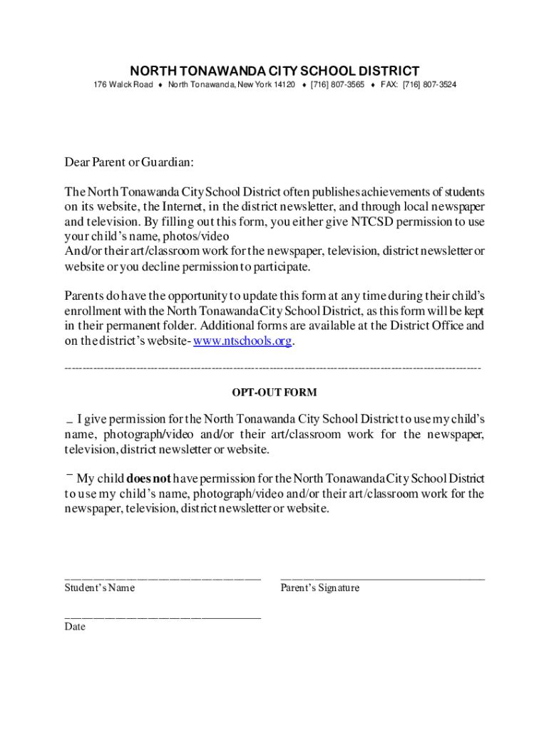 Parents or guardians of students attending schools within the North Tonawanda City School District are required to file.