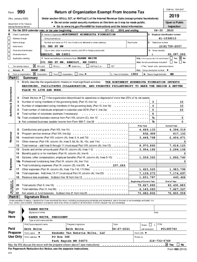 990FormOMB No. 15450047Return of Organization Exempt From Income Tax2019Under section 501(c), 527, or 4947(a)(1) of the Internal Revenue Code (except private foundations) Do not enter social security
