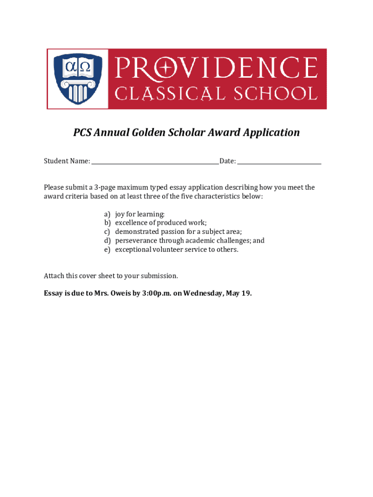 To fill out the PCS Annual Golden Scholar application, follow these steps: