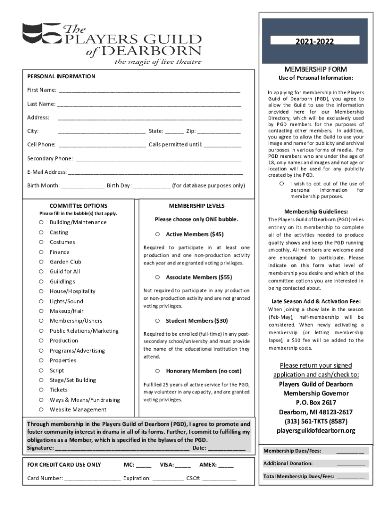 20212022FORM MEMBERSHIP IMPERSONAL Information of Personal Information:First Name: Last Name: Address: City: State: Zip: Cell Phone: Calls permitted until: Secondary Phone: Email Address: Birth Month: