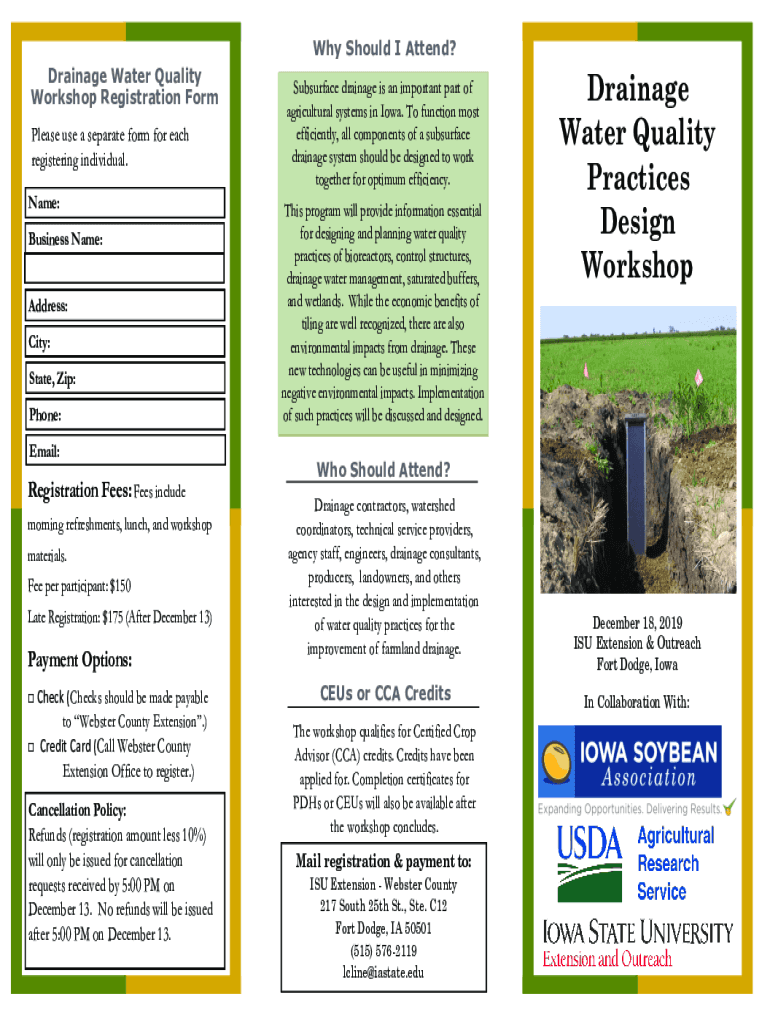 Why Should I Attend? Drainage Water Quality Workshop Registration Form Please use a separate form for each registering individual. Name: Business Name:Address: City: State, Zip: Phone: Email:Registration