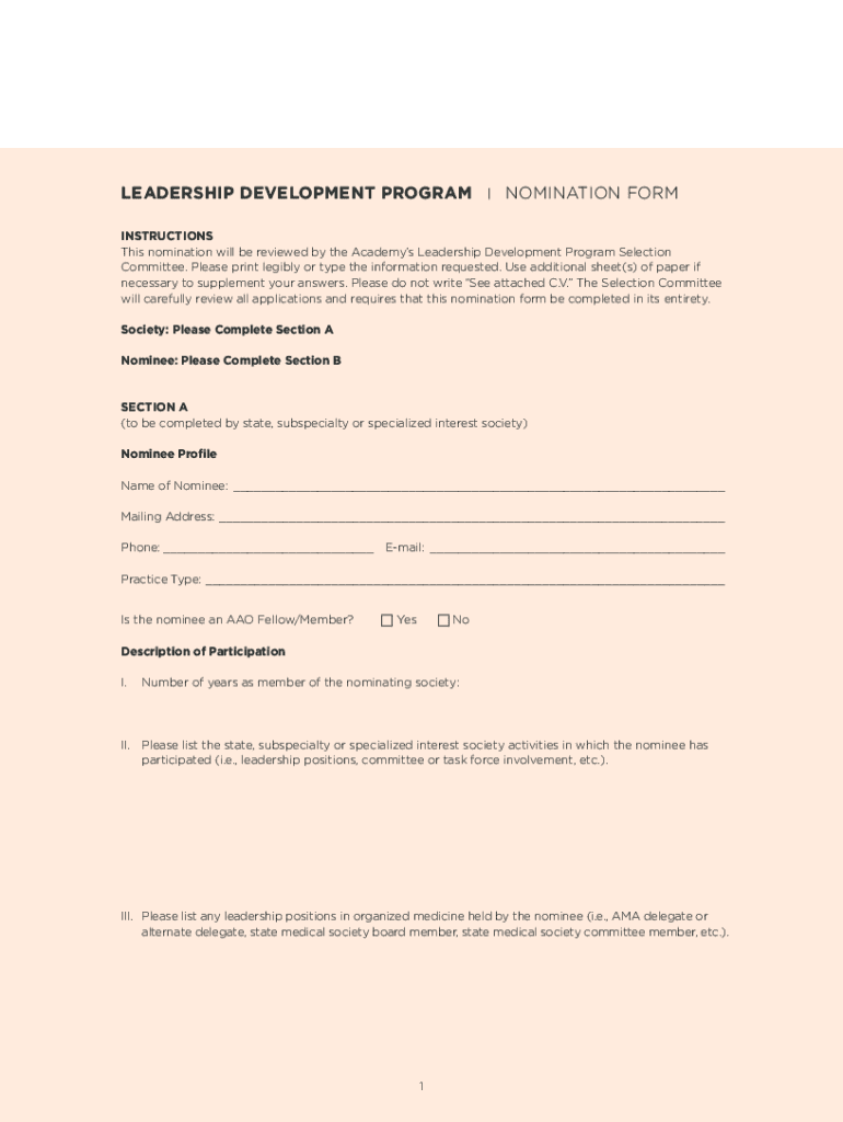 LEADERSHIP DEVELOPMENT PROGRAM NOMINATION FORMED XXIII Class of 2021LEADERSHIP DEVELOPMENT PROGRAM|NOMINATION FORMINSTRUCTIONS This nomination will be reviewed by the Academies Leadership Development